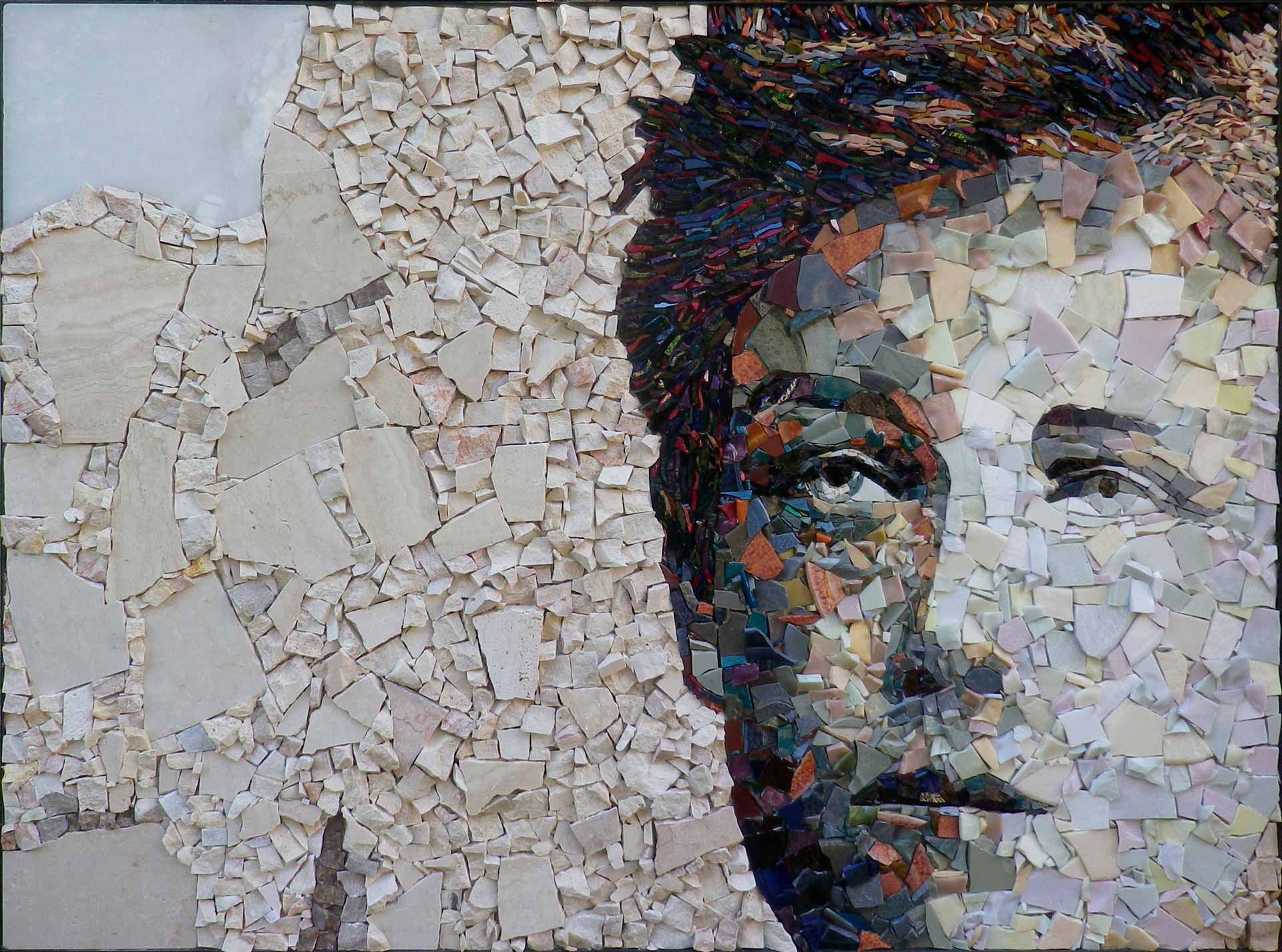 Figures of the modern and contemporary mythology Arthur Rimbaud, 60.5 x 51.5 cm, smalt, marble. Baudelaire, 2012, 121 x 90 cm, smalt, marble. Rimbaud, 2013 – 104 x 141 cm – smalt, marble Deleuze, 2014 – 42,2 x 73,2 cm – smalt, marble Houellebecq – 151 x 151 cm – smalt, marble